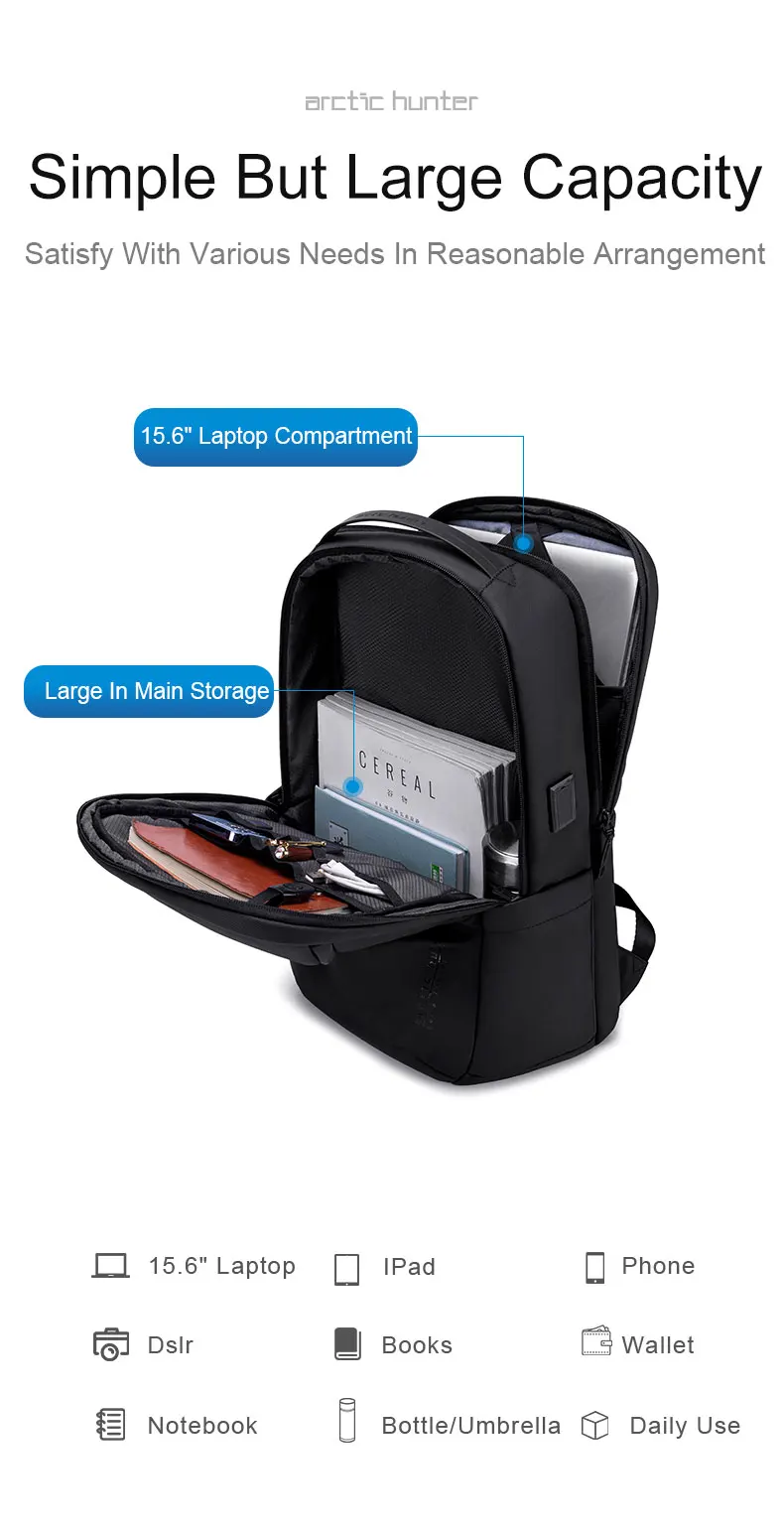 Le modèle Arctic Hunter B00555 est un sac à dos ordinateur/quotidien bien conçu : compatibilité 15,6″, matériaux résistants, bon format et volume pour usage urbain ou professionnel. Si vous cherchez un sac pour transporter un ordinateur + accessoires + documents sans aller vers les gros volumes de voyage, c’est une option solide.