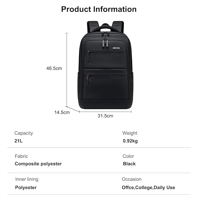 Le format ~21 L est compact mais suffisant pour un usage quotidien (ordinateur + documents + accessoires), ce qui le rend adapté pour travail, études ou déplacement urbain.